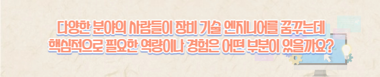 자세한 업무를 알려드리다 보니 벌써 인터뷰의 내용이 기대되지 않나요!? 그리하여 장비 기술 엔지니어에 대해 궁금하신 점이 많을 것이라 생각하여 인터뷰하였어요