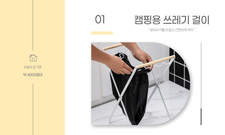 대부분의 자취방은 크지 않은 공간이기 때문에 공간 활용이 굉장히 중요한데요, 많은 분들이 시중에 판매되는 3단 분리수거함을 사용하실 것 같아요! 하지만 제 경험상.. 배달용기나 쓰레기에 물기가 있는 상태라면 분리수거함 안에 물이 고여 곰팡이가 생길 수 있고 쓰레기를 버릴 때 3단을 몽땅 들고 나가야 되는 상황이 생기게 됩니다. 캠핑용 쓰레기 걸이는 걸이 양쪽에 비닐봉지를 걸어 사용하는 아이템인데요, 먼저 사이즈가 작아 다른 분리수거함에 비해 공간을 많이 차지하지 않고 봉투가 다 찼을 때 봉투까지 비닐 쓰레기로 한번에 처리할 수 있어서 굉장히 위생적이랍니다😘