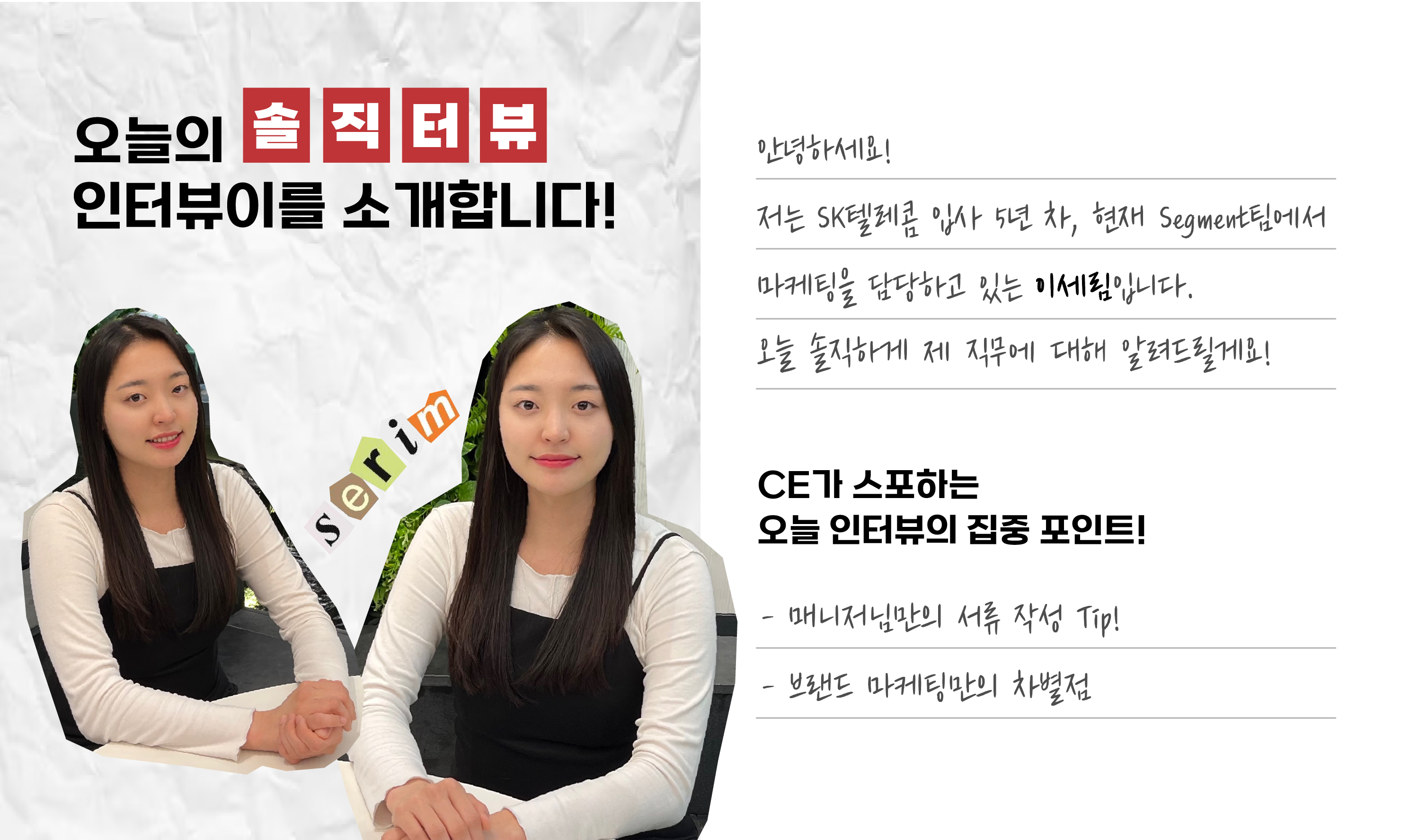 그럼, 세림님과 함께하는 첫 번째 <솔직터뷰> 마케터편 시작해볼까요?