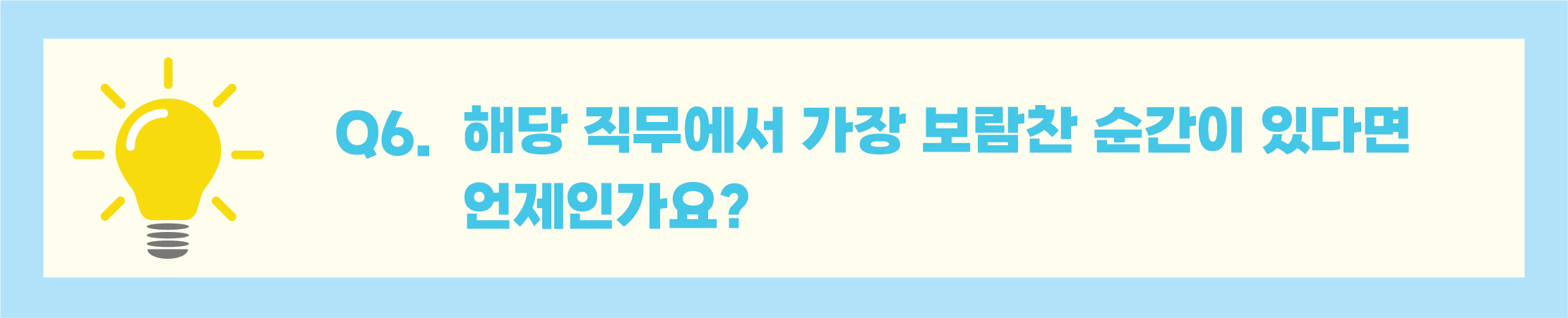 HR Design Lab 프로젝트에 참여하셨던 멤버분들이 프로젝트 종료 후 해당 프로젝트를 통해 회사의 HR제도에 대해 많이 배울 수 있었고, 조금 더 나은 방향으로 Ideation할 수 있었다는 피드백을 받았을 때 굉장히 보람을 느꼈습니다.