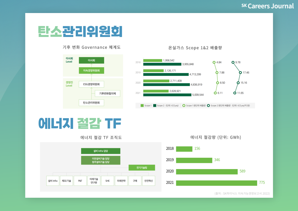 우리 삶의 터전인 지구 환경을 지키는 것은 지속 가능한 미래를 위해 가장 중요한 과제 중 하나입니다. 이에 SK하이닉스는 더욱 적극적이고 체계적으로 기후변화에 대응하고 넷 제로 달성 과제를 추진하기 위해, ESG 경영위원회 산하에 탄소관리위원회를 신설하였습니다.