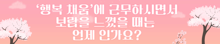 그럼 이제 본격적으로 ‘행복채움’ 단장님과 근무자님의 인터뷰 내용을 알아보러 가볼까요?