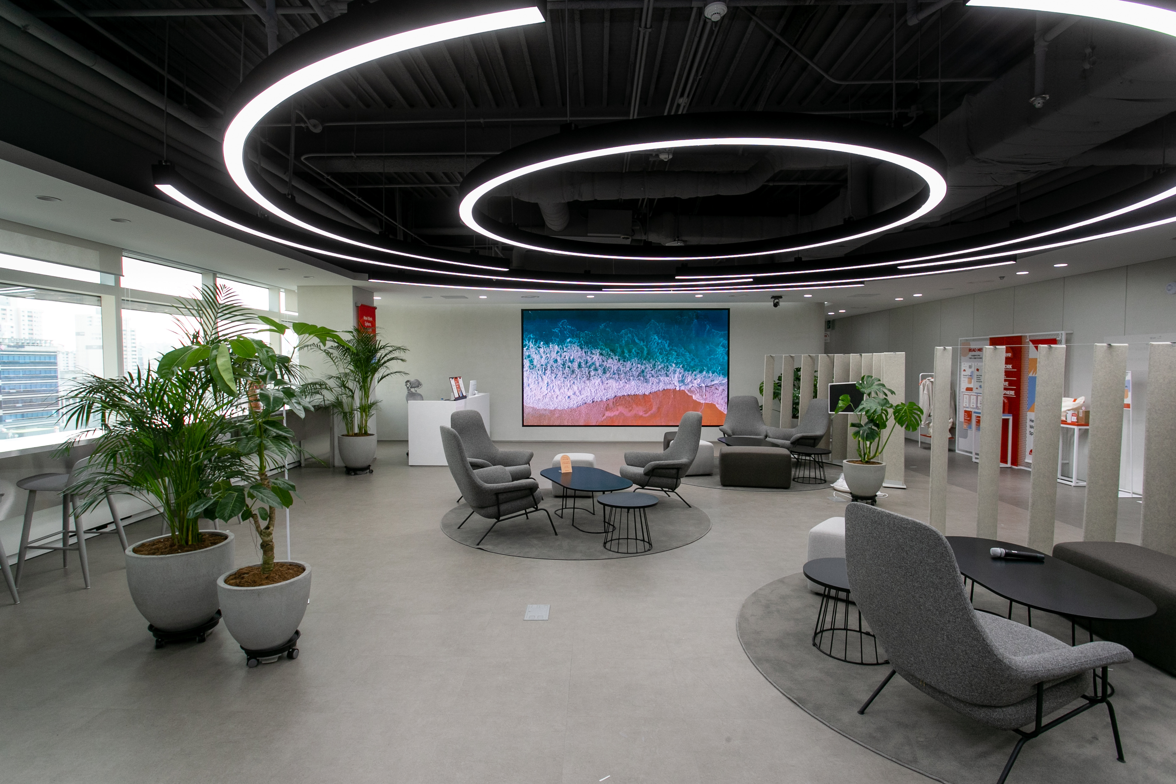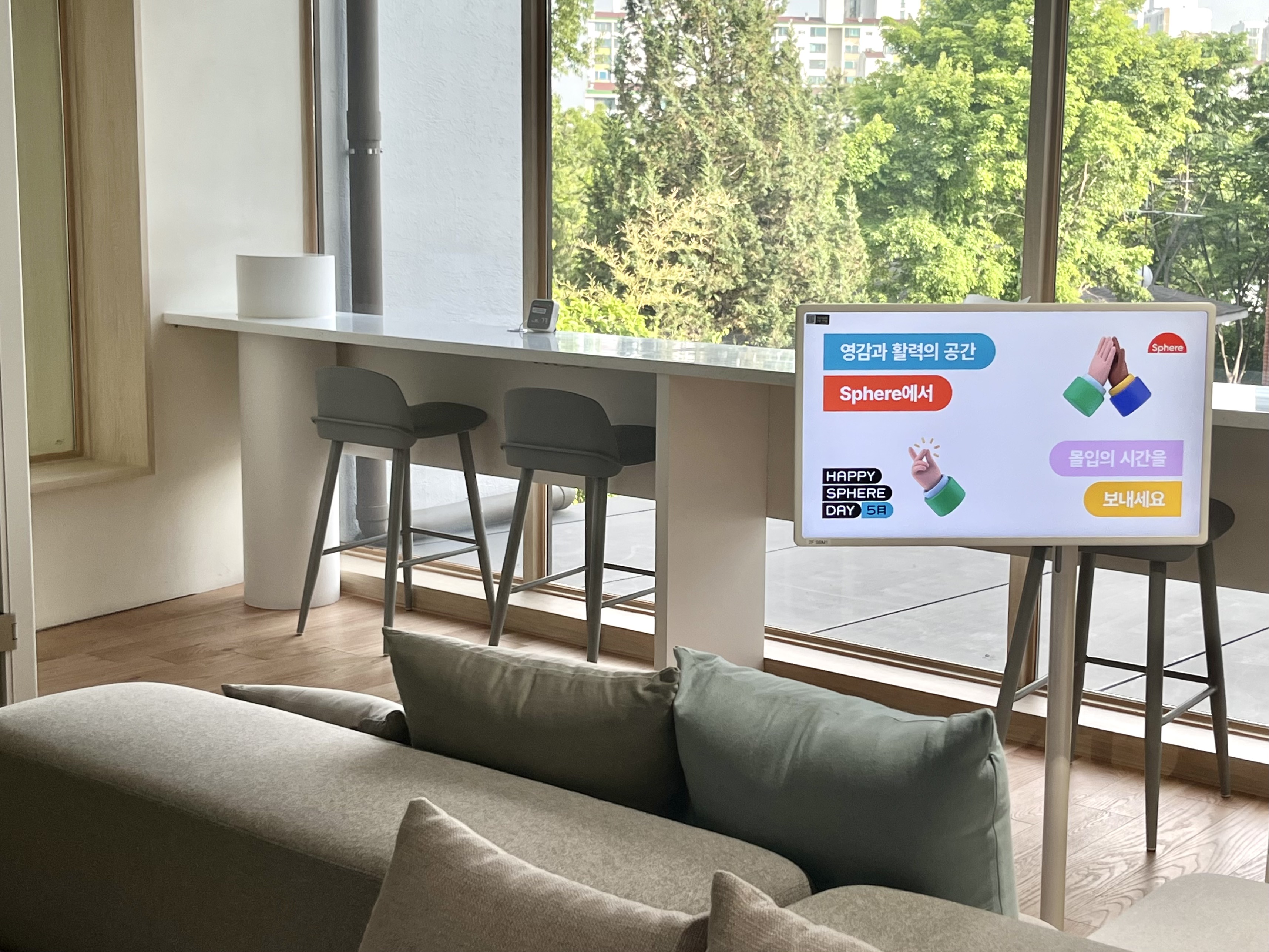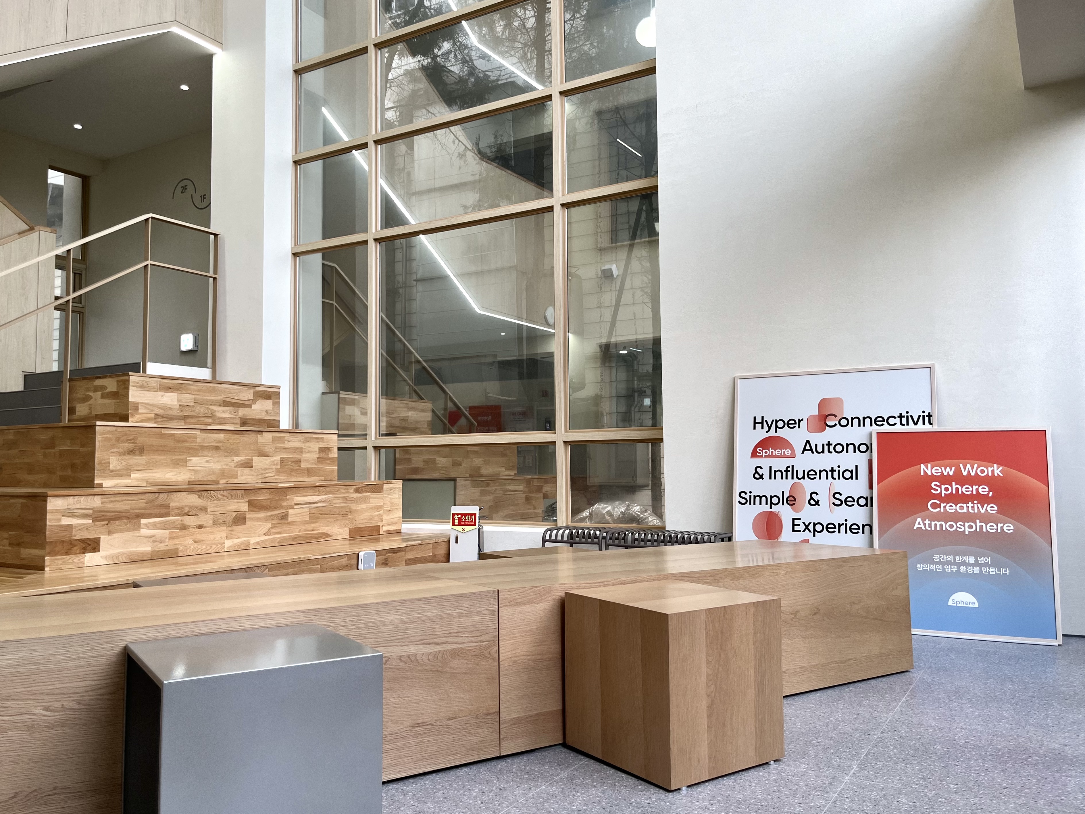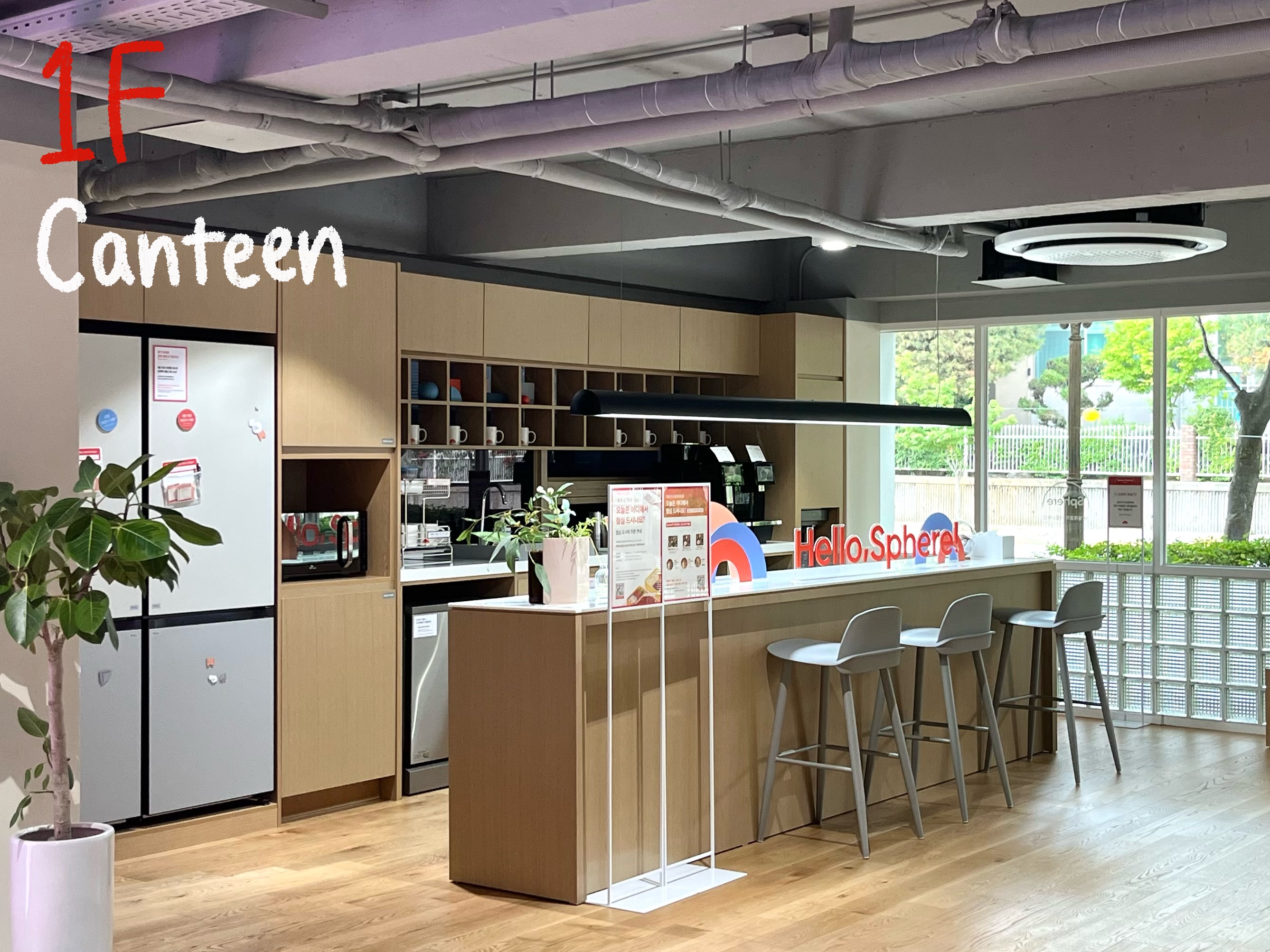 이렇게 출입 게이트를 무사히 지난 뒤, 마주하게 된 1층의 모습! 들어서자마자 대형 스크린과 함께 Sphere Hall이 출근한 CE를 맞이해주었습니다.