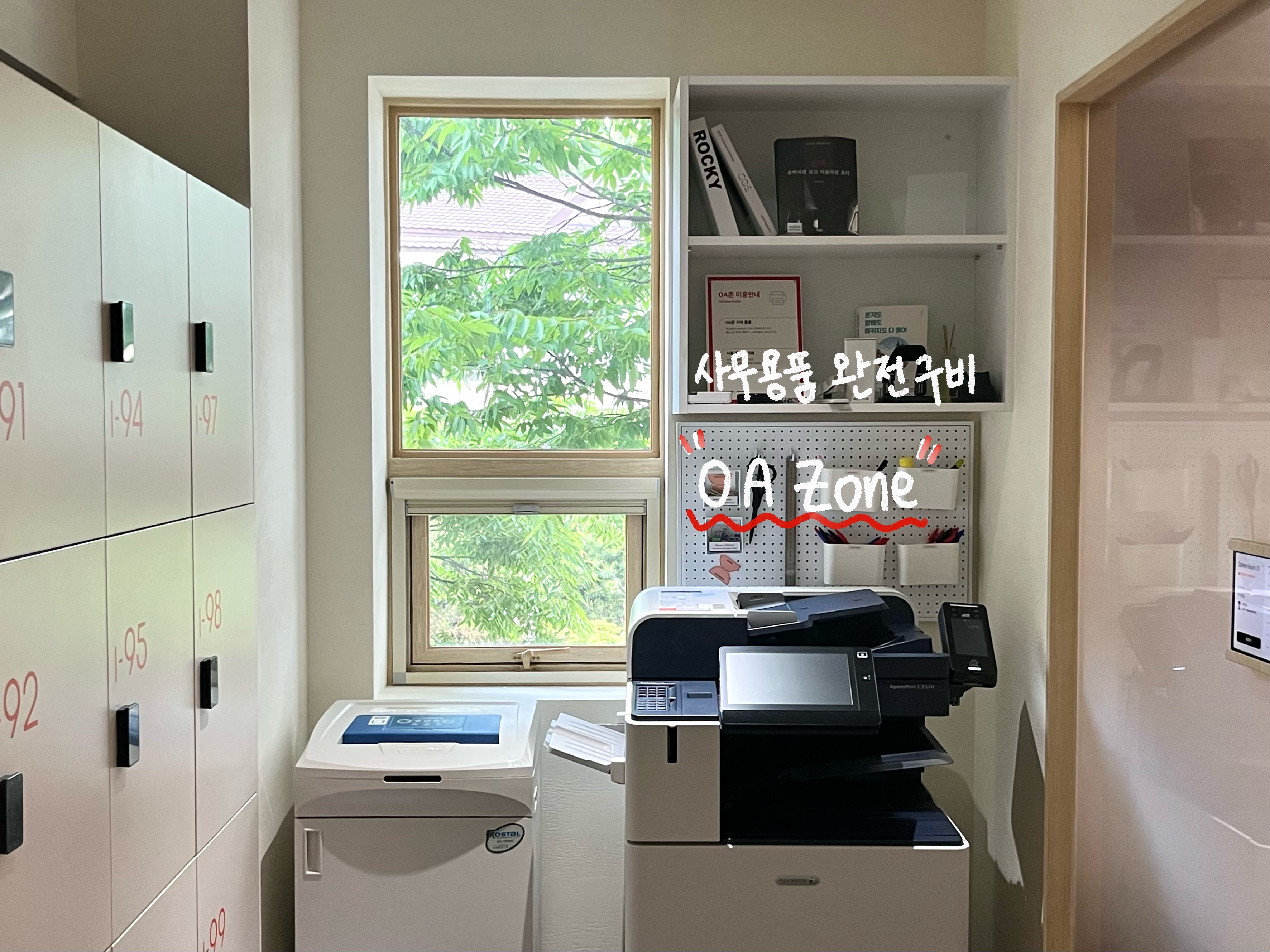 이러한 휴식 공간 외에도 구성원들의 편의를 위한 섬세한 배려가 돋보이는 공간 또한 추가적으로 발견할 수 있었습니다. 구성원들이 편하게 업무에 관련된 용품과 짐을 보관할 수 있는 넉넉한 공용 캐비닛과 각종 사무용품이 구비되어 있는 OA Zone, 편안한 소파에 앉아 언제든 가벼운 미팅을 진행할 수 있는 오픈형 협업 공간 등이 각 층에 여유롭게 구비되어 있었습니다.