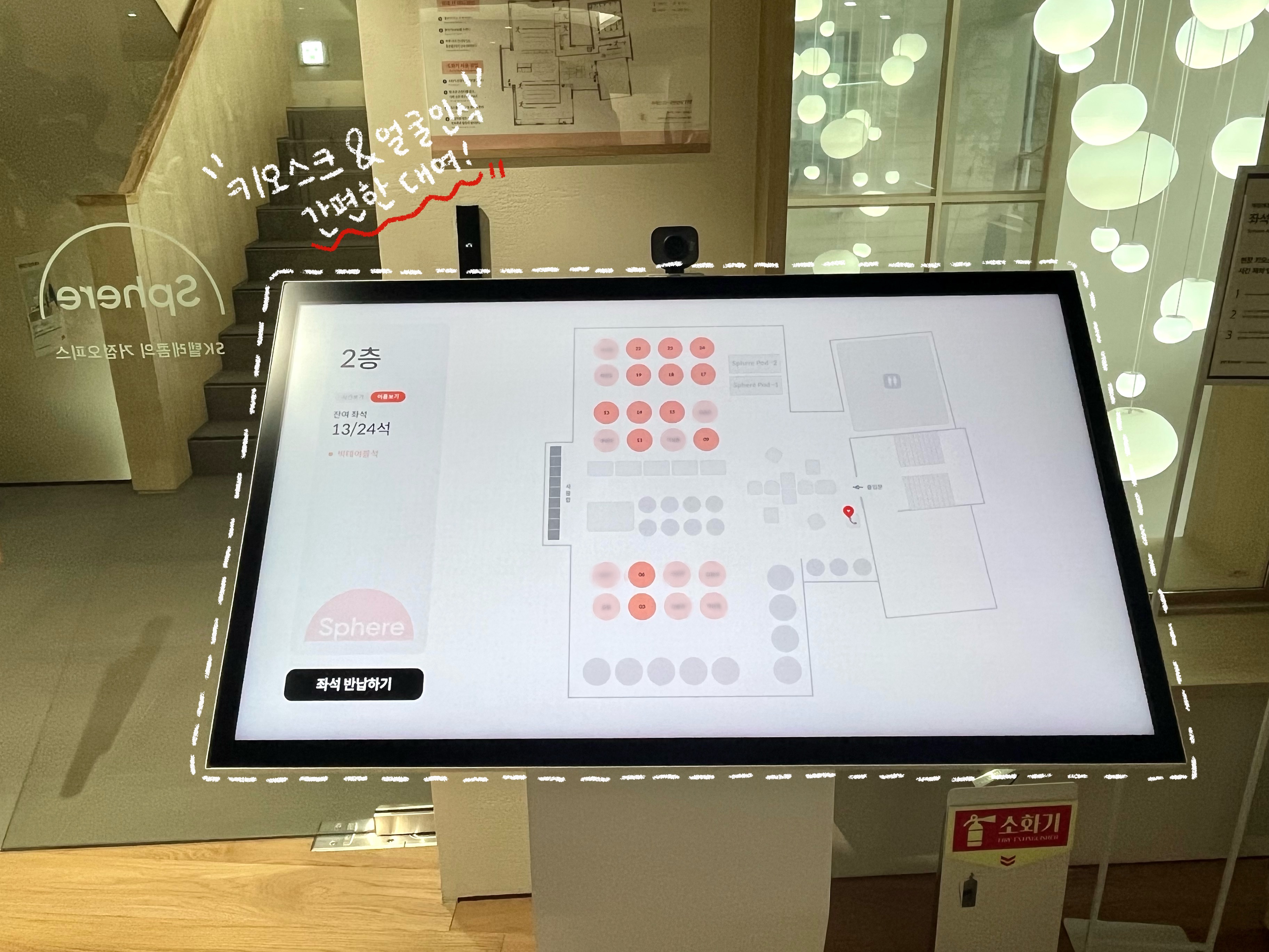 거점 오피스에서 미팅을 진행하면서 발생할 수 있는 네트워크 및 소통 문제, 스피어에서는 걱정할 필요가 없었습니다. 조용한 장소에서 발표를 진행해야 하는 CE는 1인 회의실인 Sphere Pod을 선택했는데요. 단순히 공간만 대여해 주는 것이 아닌 최신형 모니터와 최상의 화상 장비가 구비되어 있어 퀄리티 높은 온라인 회의가 가능하다는 점이 가장 매력적인 부분인 것 같습니다👍🏻