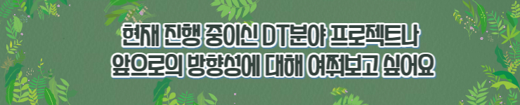 이제 본격적으로 현직에서 DT관련 업무를 맡으시는 PRO 님과의 인터뷰를 알아볼까요?