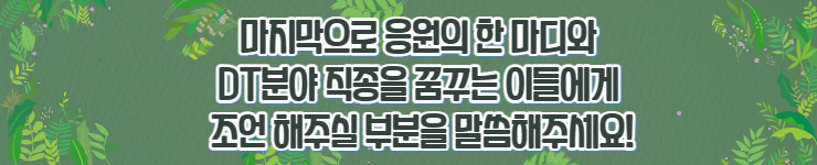 인터뷰 내용을 보시다 보면 되게 어렵고 추상적으로 느껴지면서도 현대 사회에서 DT의 중요성과 앞으로의 방향성에 대해 알게 되는 느낌이지 않나요? 저도 인터뷰를 준비하면서 여러 내용을 조사하고 공부하다 보니 다양한 분야와 연계되면서 현대 사회에서 핵심적인 부분이라는 생각이 들었어요. 꼭 DT가 아니더라도 여러분들이 관심을 가지시고 도움이 되는 분야가 있다면 해당 분야에 대해 잘 준비하셔서 좋은 결과 있었으면 하는 바램이에요. 오늘도 긴 글 읽어 주셔서 감사합니다. 즐거운 하루 보내셨으면 해요!