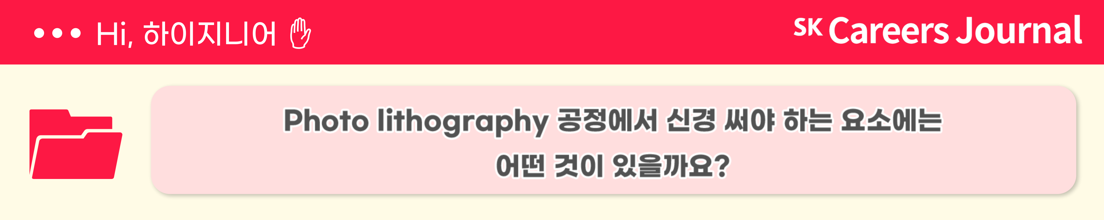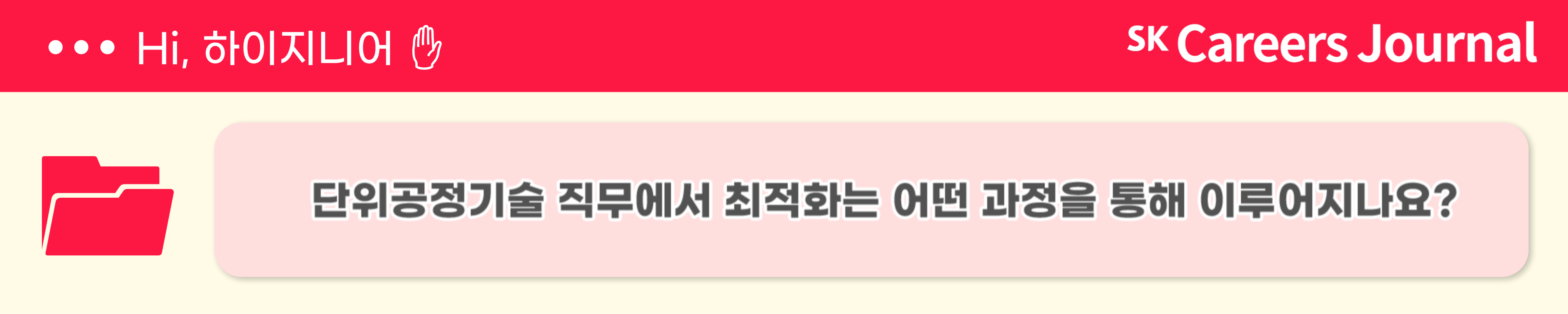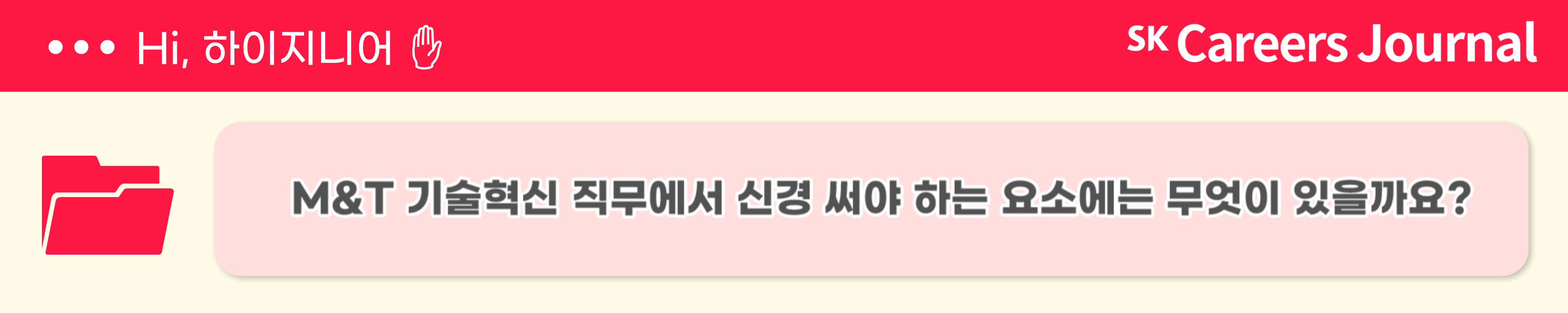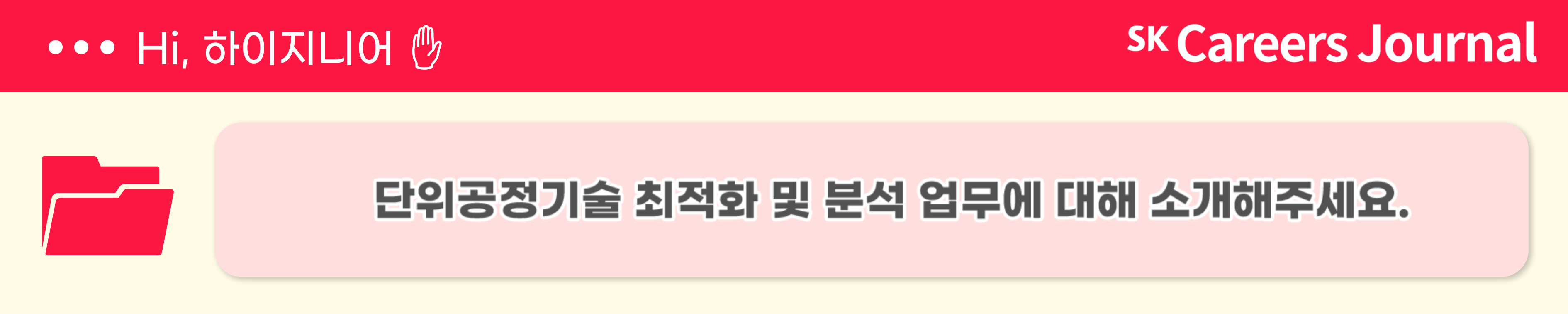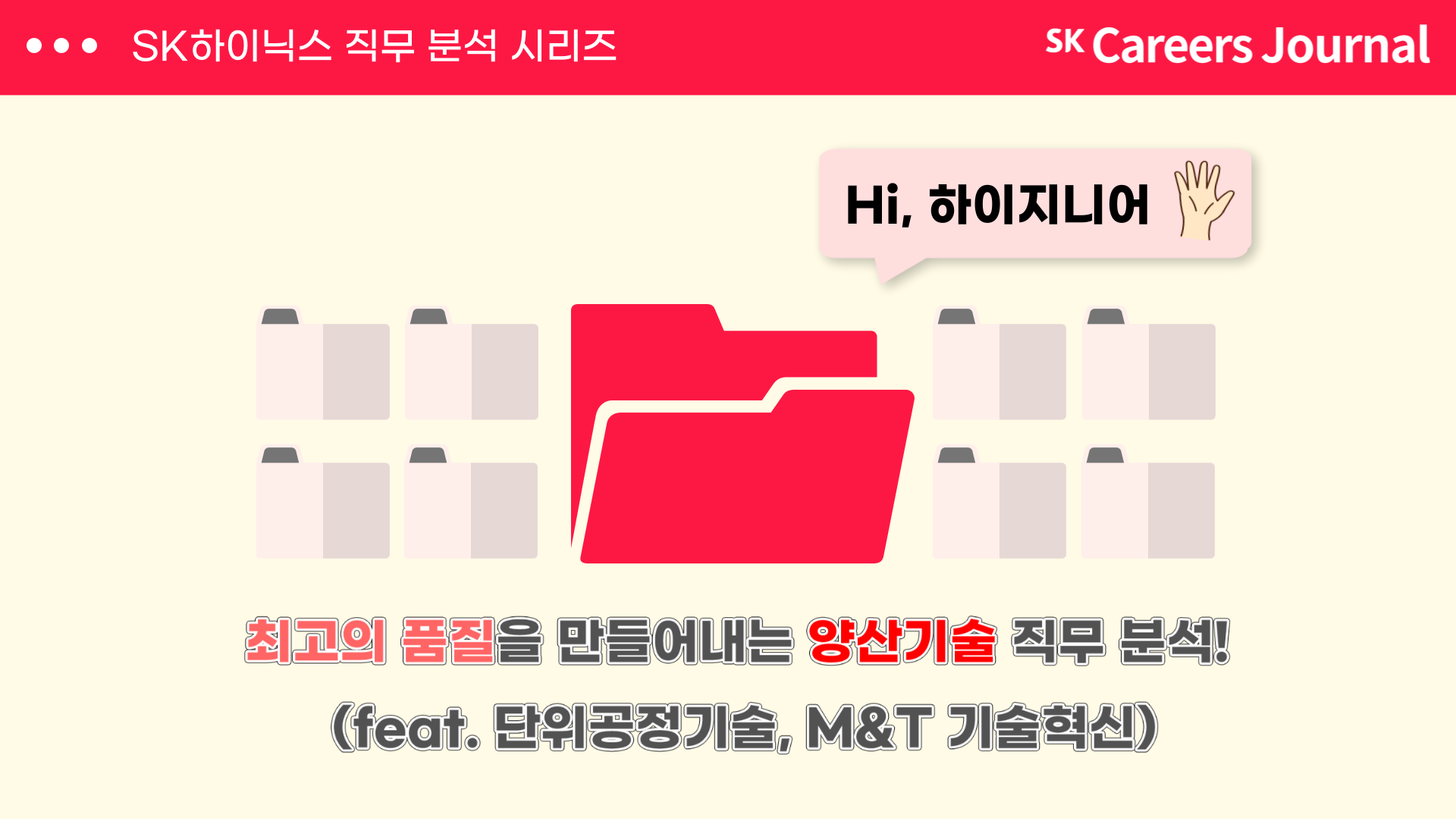 오늘은 SK하이닉스의 다양한 직무 중 양산 기술의 단위 공정 기술과 M&T 기술 혁신 직무에 대해 알아보았습니다. 이번 기사가 도움이 되셨다면, 앞으로도 특급 정보가 가득한 SK Careers journal에 많은 관심 부탁드립니다! SK하이닉스 취재기자 정다현이었습니다. 감사합니다.