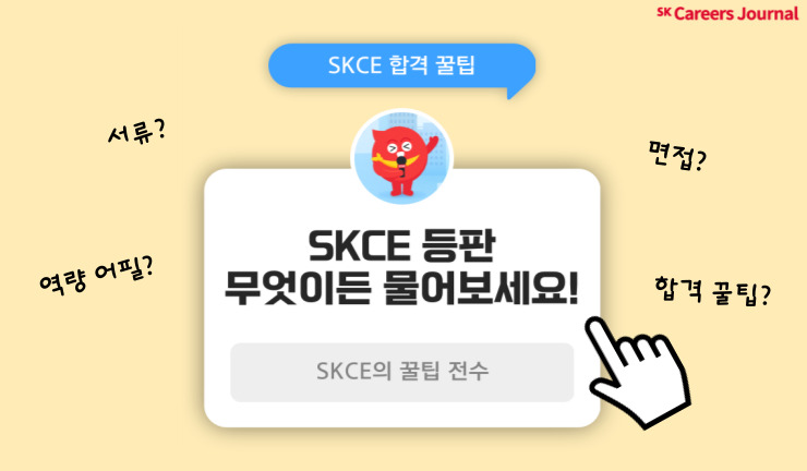 황수현 CE: 관계사에 대한 내용을 열심히 파악하고 SKCE에서 활동할 경우 지금까지 했던 스펙을 어떻게 녹일지에 대해 유연하게 설명했던 점이 합격하는데 도움이 된 것 같습니다 :)