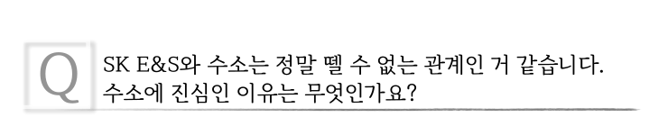 이처럼 SK E&S가 보유하고 있는 기존 LNG사업과 재생에너지 사업들과 수소사업은 밀접한 상관관계를 갖고 있고, 서로 간의 시너지가 발생시키고 효율성을 극대화하여 그린 포트폴리오를 완성할 수 있기 때문에 SK E&S에서는 수소사업을 앞으로의 중요한 사업의 한 축으로 삼고 있습니다.