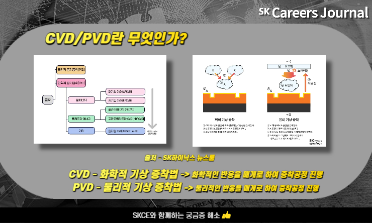 이러한 박막을 성장시키는데 다양한 방식들이 사용되는데 오늘은 대표적인 방식인 화학적 기상 증착법(CVD)와 물리적 기상 증착법(PVD)에 관해서 알아보고 공정 과정에 필수적인 가스들과 SK머티리얼즈와의 관계를 살펴보도록 하겠습니다.