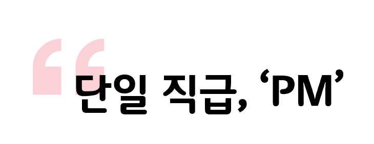 단일 직급인 ‘PM’을 사용합니다. PM은 ‘Professional Manager’의 약자로, ‘스스로 업무를 완결적으로 관리하는 프로페셔널한 구성원이 되자’라는 의미를 담고 있습니다.