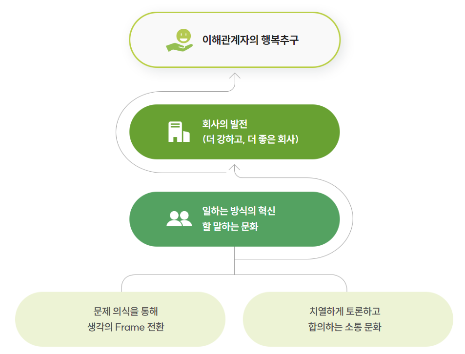 다음과 같은 구조로 기업의 발전부터 사회로의 공헌까지 연결하고 있습니다.
