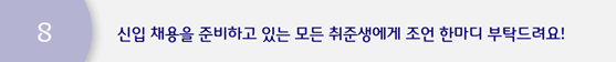 지금 취업 준비를 하고 계신 여러분도 꼭 긴 터널처럼 느껴질 수 있지만, 믿음을 갖고 노력하면 언젠가는 터널 끝에서 밝은 빛을 만나실 수 있을 거예요.