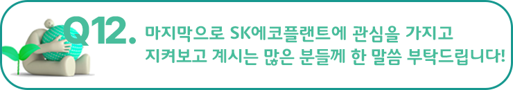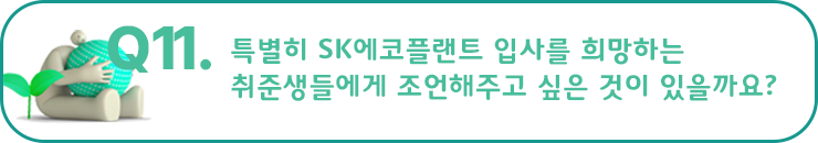 방지현 프로님 : SK에코플랜트는 오늘보다 내일이 더 기대되는, 항상 더 나은 방향으로 나아가려고 노력하는 기업이라고 생각해요. 앞으로 더 멋진 분들과 함께할 날을 기대하게 됩니다. 자신감을 가지고 도전해보세요!