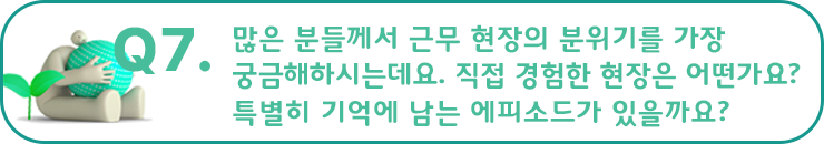 방지현 프로님 : 개인적으로 가장 기억에 남는 활동으로 학교 재학 당시에 참여했던 ‘규찰대’ 활동을 꼽을 수 있을 것 같아요. 늦은 시간까지 캠퍼스 내에서 연구를 진행한다던가 도서관에서 공부하는 학생들이 있기 마련이잖아요. 그때 학우들이 학교에서 안전하게 다닐 수 있도록 노력했어요. 특히나 당시 학교에 외부인들의 출입이 비교적 자유로워서 규찰대 활동을 통해 혹시 모를 사고를 방지하기 위해 더욱 신경 썼던 것 같아요. 그 과정에서 리더십도 키우고 안전에 대해 한 번 더 생각해볼 수 있었습니다. 이렇게 작은 것이라도 좋으니 자신의 직무를 떠올렸을 때 본인이 할 수 있는 활동을 다 해보면 좋을 것 같아요.