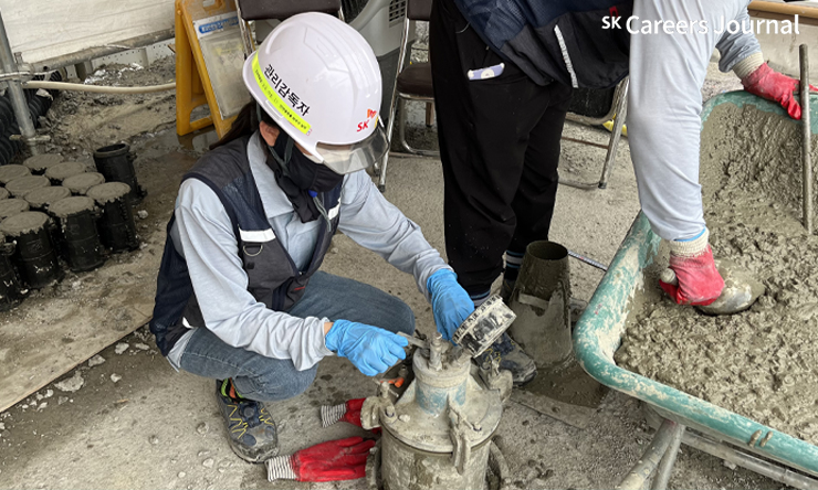 한도은 프로님 : 저는 현재 현장에서 품질관리자로 근무하고 있는데요. 각종 시험 진행을 통해 건설 자재의 적격품 사용 여부를 확인하고, 현장 시공상태 점검을 통한 품질점검, 근로자 품질 교육 등을 함께 진행하고 있습니다.