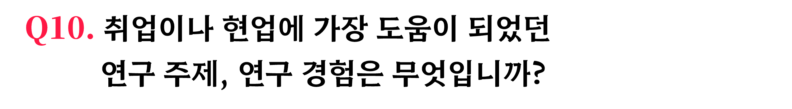 그렇다면 입사하신 지 오래되었지만, 취업 이전의 연구 주제나 연구 경험 중에서 취업에 도움이 되었다고 생각하시는 것이 있다면 무엇인가요?