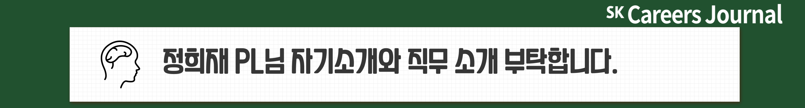 저는 2022년 5월에 SK머티리얼즈로 이직하게 된 정희재입니다. 현재 인사 업무를 수행하고 있답니다. 평가/보상/채용/GHR 등 다양한 영역 중 채용/인력운영 관련 업무를 수행하고 있습니다.