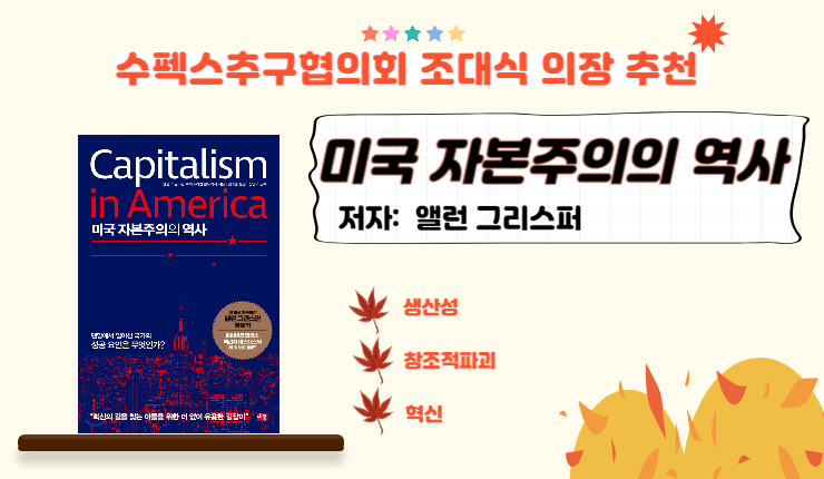 오늘 첫 번째로 소개해드릴 도서는 수펙스추구협의회 조대식 의장님의 추천으로 <미국 자본주의의 역사>입니다.