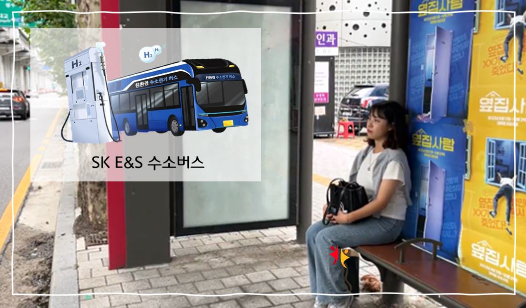 일상생활 속 세 번째 관계사는 SK E&S이다. SK E&S는 책임 있는 에너지 기업으로서 인류의 지속가능한 삶과 안전한 에너지 사용을 위해 변화와 도전을 거듭하는 기업이다. [7] 친환경 에너지라는 키워드에 맞게 SK E&S는 수소버스를 통해 만날 수 있다. SK E&S의 수소버스는 온실가스 국가감축목표 달성에 도움을 주며, 안전하고 효율적인 이동수단이다. 수소버스는 경유버스에 대비해 소음은 약 60% 진동은 약 40%가 감소해 보다 쾌적한 탑승이 가능하며, 운행 과정에서 배기가스를 배출하지 않는다. 배기가스 대신 연료전지에서 수소와 산소가 전기를 만들 때 발생하는 순수한 물을 배출한다. [8] 수소경제 시대를 이끌어 나갈 SK E&S와 함께 환경보호에 가까워져 보자!