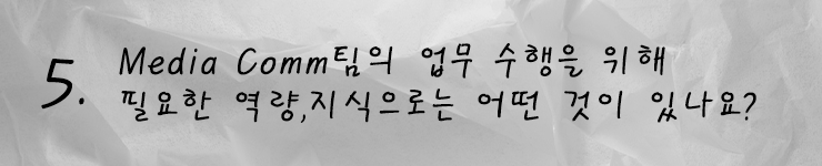 Media Comm팀의 업무 수행에 있어 중요한 것은 이슈 파악 능력과 커뮤니케이션 능력이었습니다.(@^0^@)/