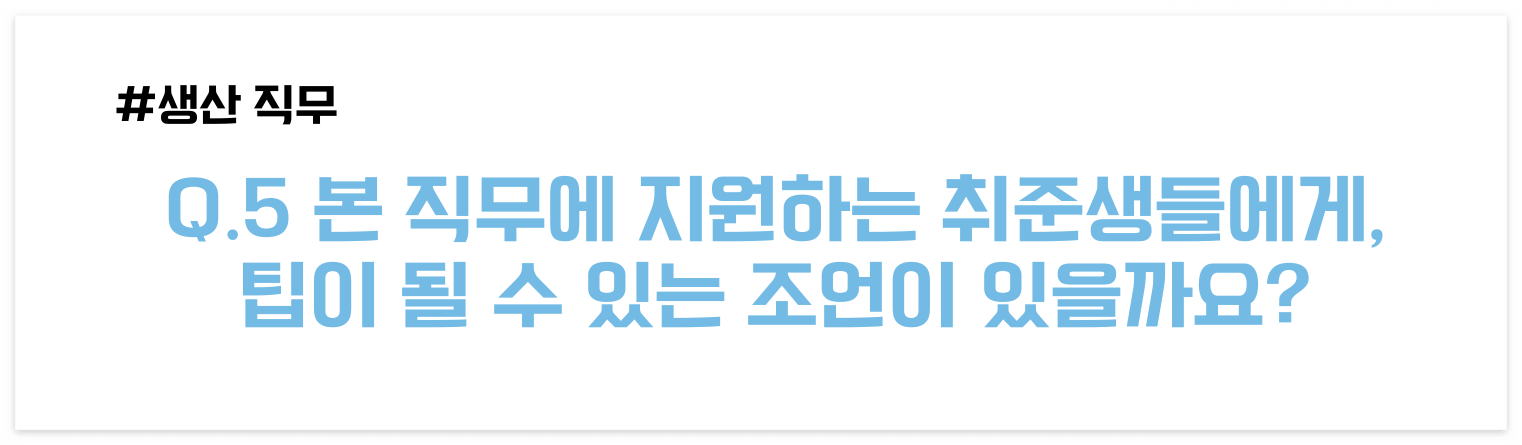 이렇게 생산 직무에서 근무하고 계시는 곽민지 매니저님을 만나보았는데요!