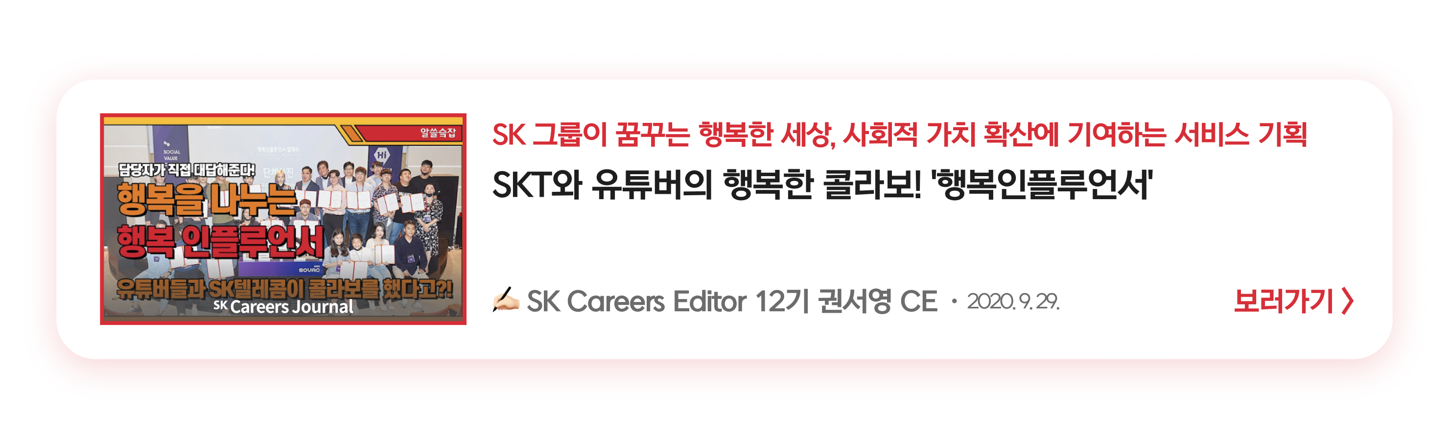 행복, 사회적 가치라는 단어를 떠올리면 단연 SK그룹이 생각나는 저! 심각한 SK 중독인가요..?