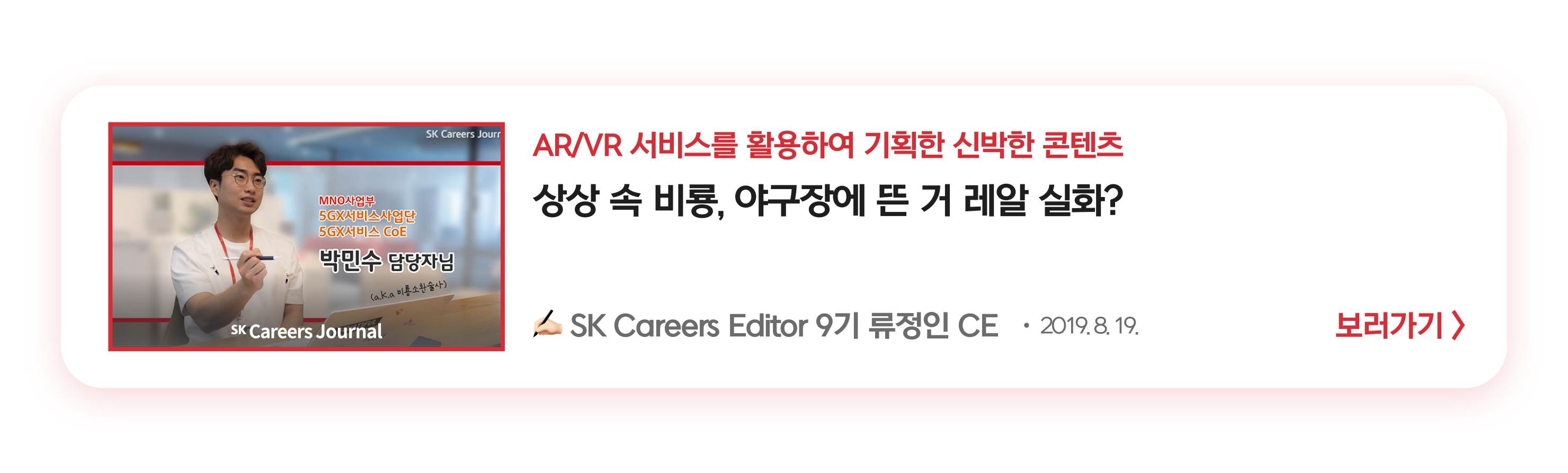 이에 맞춰 SK텔레콤의 기술을 보여준 AR/VR 서비스의 콘텐츠! 원리부터 비하인드 스토리, 현장에서의 반응까지 가득 담겨있어요 🐉