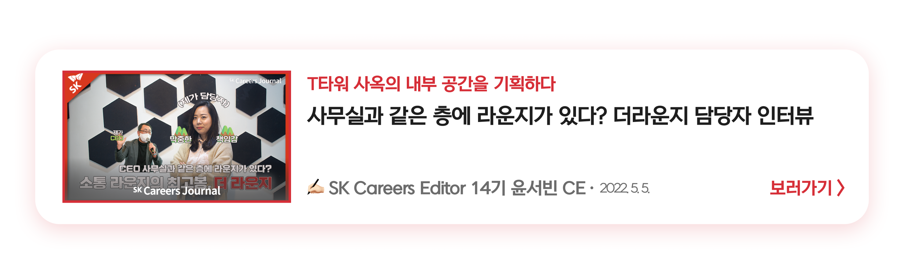 전체 구성원이 함께 어우러질 수 있는 격식 없는 소통의 장, SK텔레콤 사옥 T타워에 마련된 ‘더 라운지'.