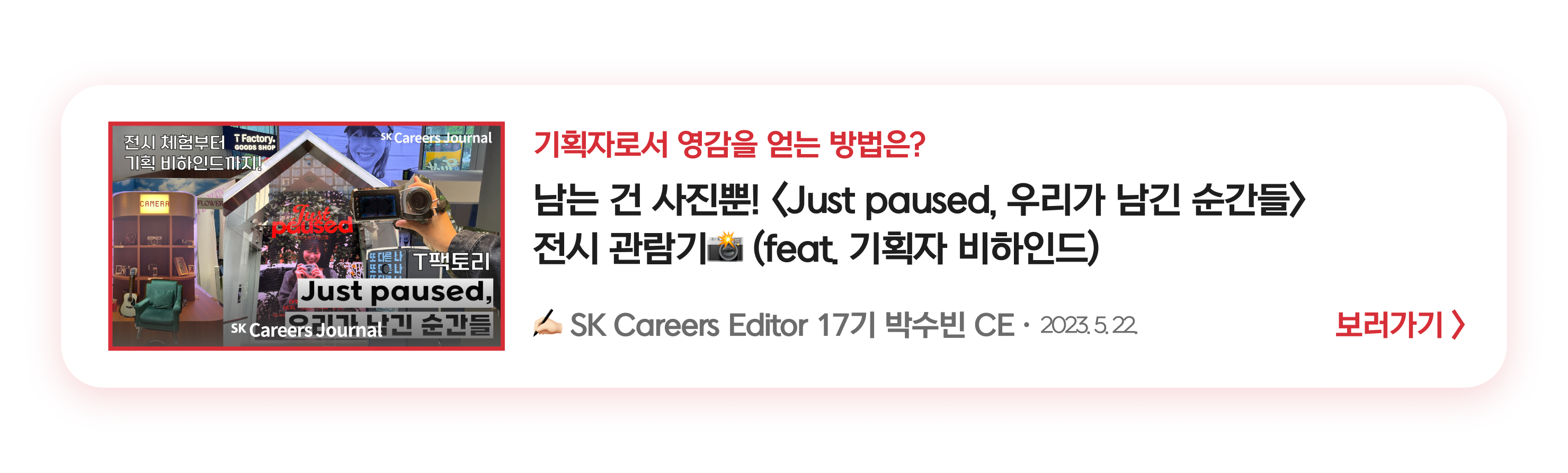 두 번째 슼갈피는 기획 직무 인터뷰에 슼- 꽂아보았는데요🔖 다음 슼갈피 또한 많은 기대 부탁드립니다.
