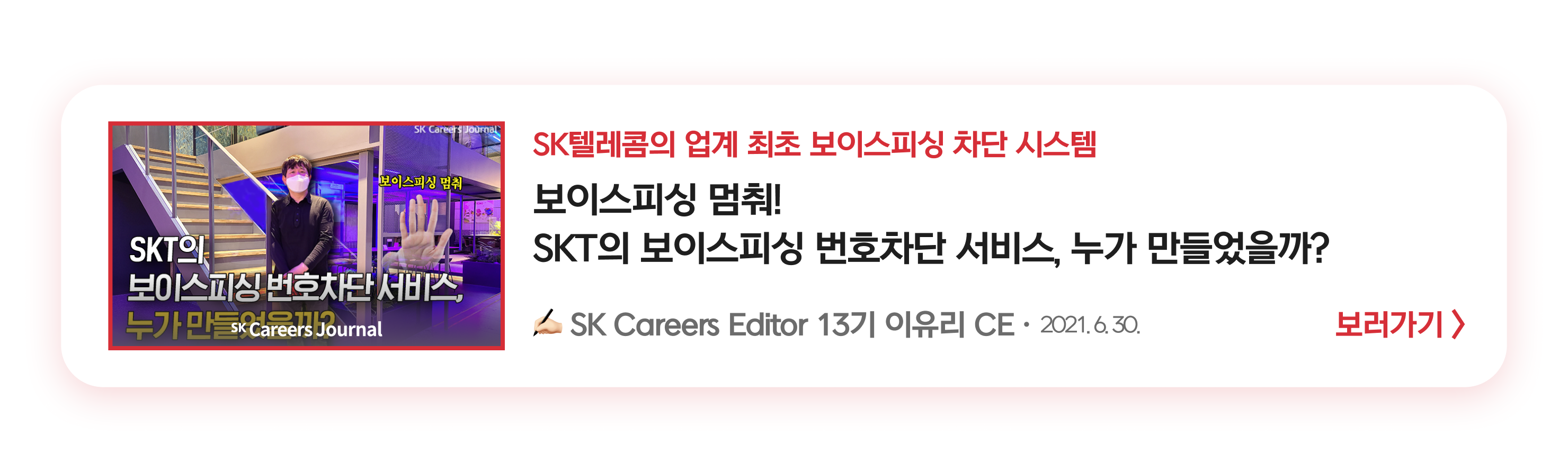 여러분, Sk텔레콤이 업계 최초로 보이스피싱 차단 시스템을 개발하고 도입한 것. 알고 계셨나요?