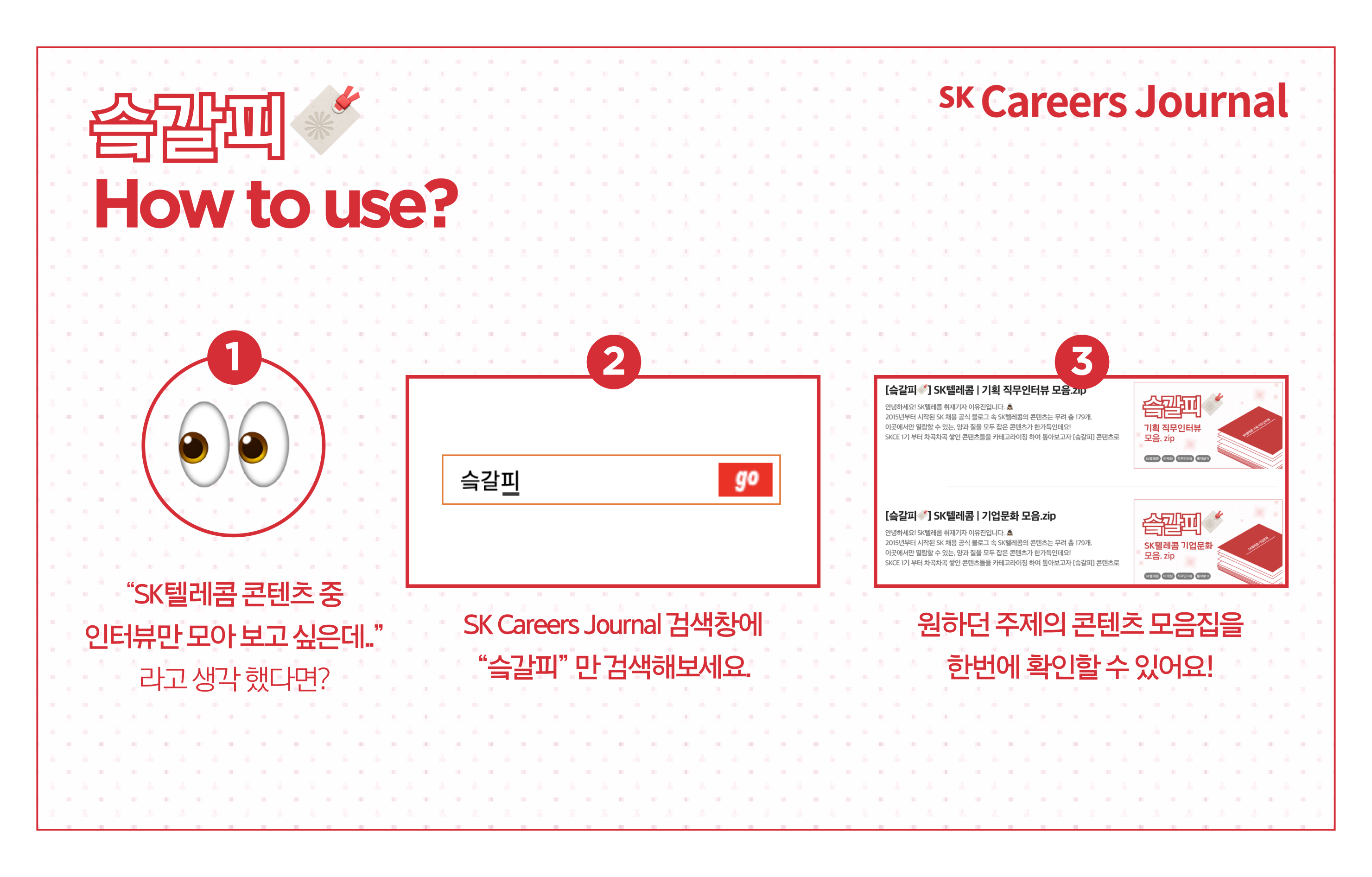 ② SK Careers Joural 블로그 검색창에 “슼갈피”를 검색해보세요