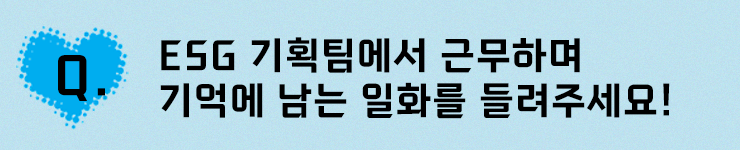 이번 2022 지속가능경영보고서를 발간하던 과정이 처음부터 끝까지 기억에 남는 것 같아요. 다른 매니저님과 오랜 시간 고민하며 토론을 하던 과정들, 지쳤을 때 서로 힘이 되던 순간들, 긍정적인 결과에 기뻐하던 모습 모두 오래 기억에 남을 것 같습니다.