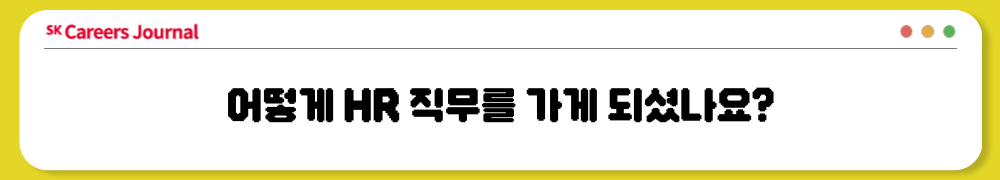 이번 기사에서는 SK하이닉스의 핵심직무라고 할 수 있는 HR 직무에 관해 다룰 예정입니다! ‘인사’ 직무에 대해 그 어디에서도 들을 수 없는 다양한 이야기를 담아왔으니 해당 직무에 관심이 있으신 독자분들이라면 꼭 놓치지 않으시길 바랍니다!