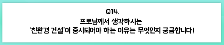 사실, ‘건설 사업’이라고 하면 환경을 보호한다는 느낌보다는 오히려 환경을 파괴한다는 인상을 주는 것이 통상적인데요. 또 그런데도 없어서는 안 될 사업이기도 하죠. ‘친환경 건설’은 바로 이런 의미에서 필요한 사업인 것 같아요! 기존의 건설 사업에 ‘환경 보존’이라는 키워드를 접목한 ‘친환경 건설’을 통해 만들어진 친환경 건축물들은 환경을 보호하면서도 인류에게 안락함을 줄 수 있게 됩니다.