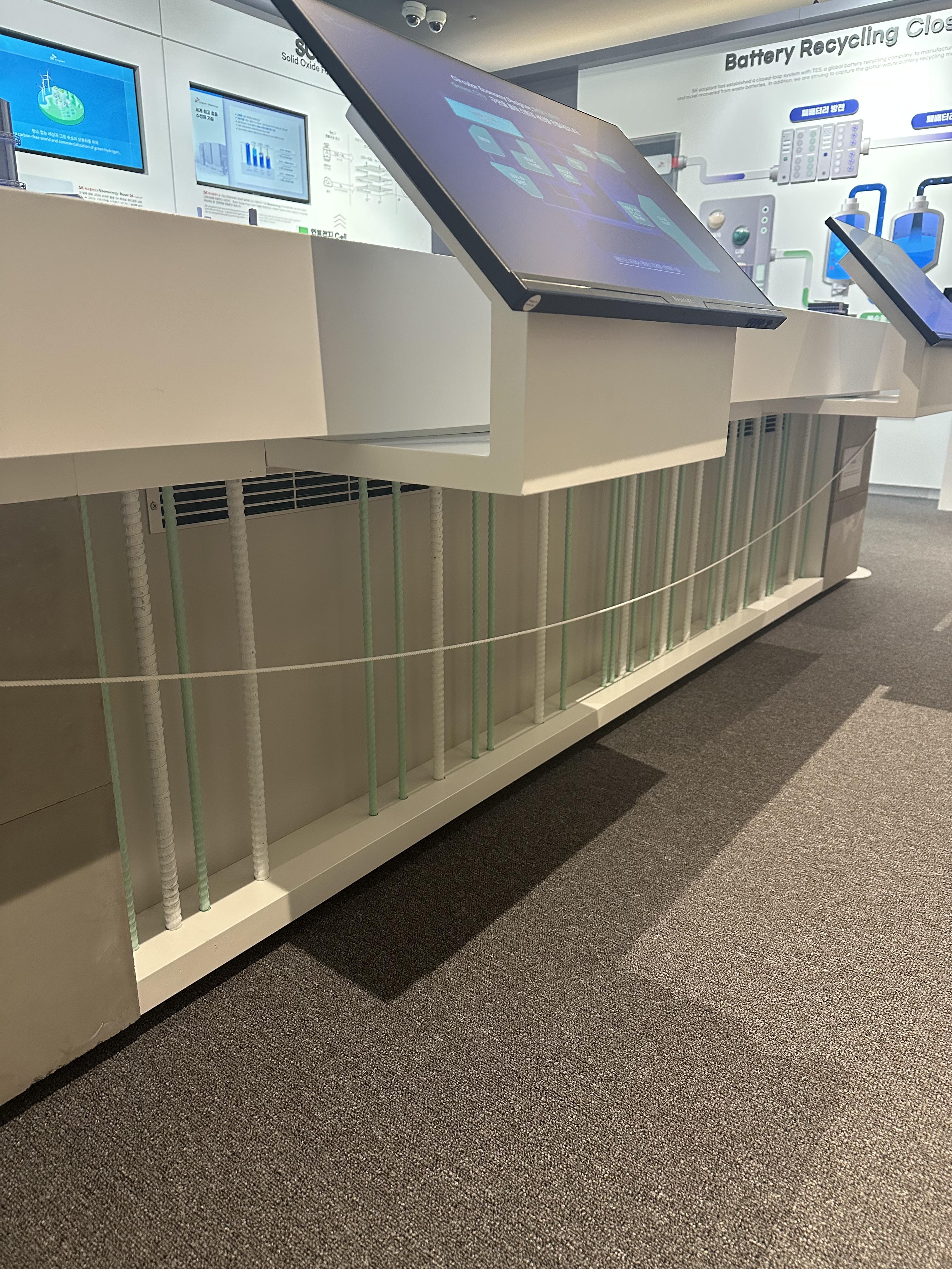 K-에코바의 기반이 되는 GFRP 소재는 북미, 북유럽 국가에서 주로 사용되는 자재로, 일반 철근 대비 4분의 1의 경량성과 2배 이상의 강도를 가지고 있으며 녹이 슬지 않는 반영구적 자재라는 점이 장점입니다.