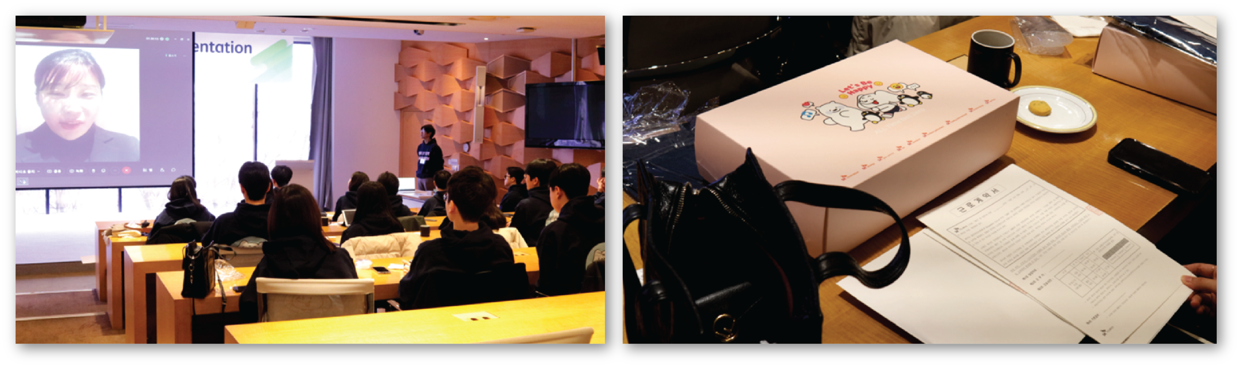 이후에는 입사 웰컴 키트와 함께 근로계약서를 전달하고, 함께 작성하는 시간을 가졌습니다. 이번 웰컴 키트는 포장에서부터 행복의 기운이 느껴집니다.