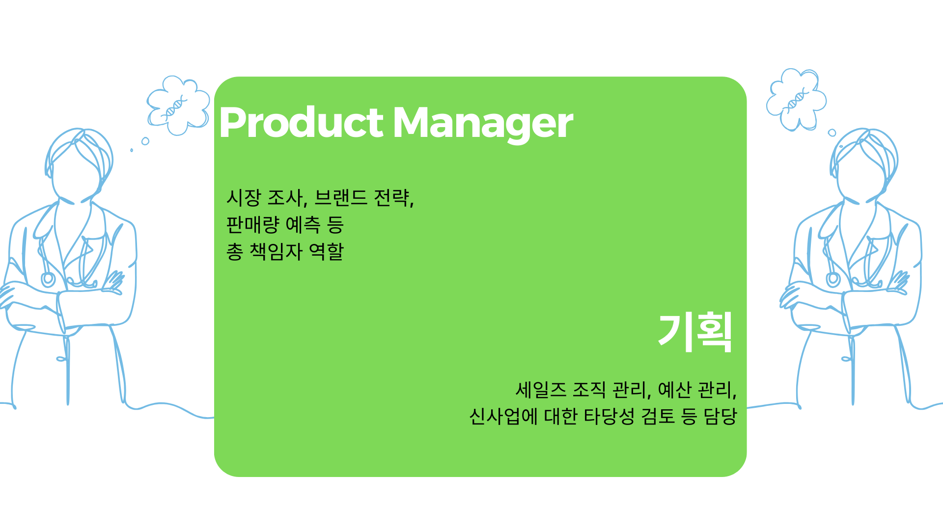 마케팅 기획 팀 내에서의 역할을 기준으로 말씀드리면, 프로덕트 매니저와 기획 파트 두 가지로 나뉘어지는데요.