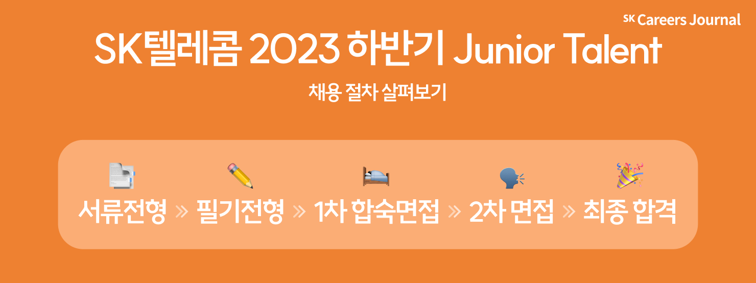 지난 2023년 8월, SK텔레콤의 하반기 공채인 Junior Talent(이하 JT)가 시작되었죠! 이번 2023 하반기 JT는 아래와 같은 채용절차로 진행되었습니다.