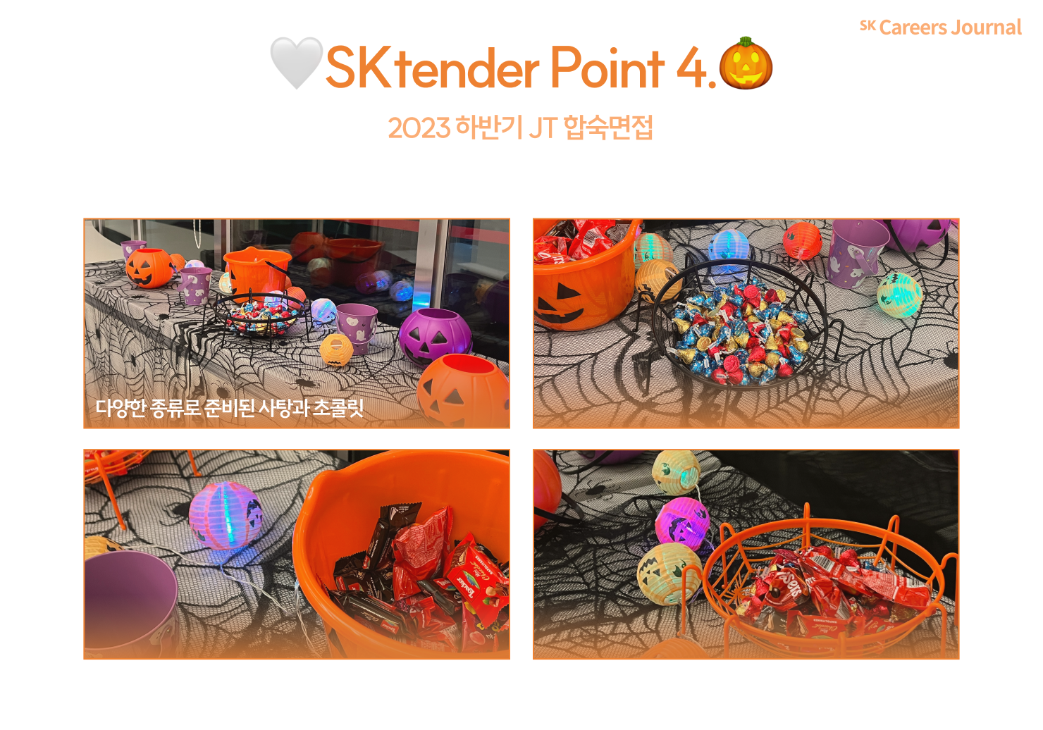 합숙면접이 진행되었던 기간 중 할로윈데이가 있었는데요. 할로윈 기간을 합숙면접으로 함께 보내는 만큼 면접자들을 위한 할로윈 기념 사탕들이 SUPEX 홀 입구 쪽에 귀엽게 자리하고 있었습니다!