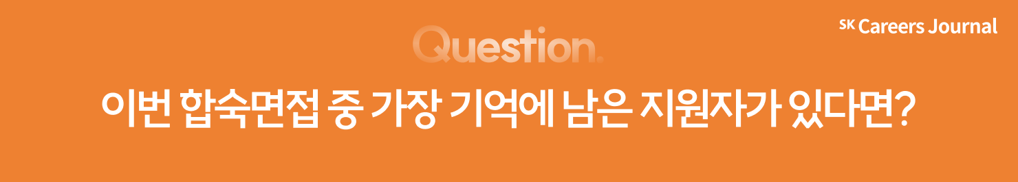 그간 악명 높았던 합숙면접에 대한 오해를 타파– 하기 위해 면접자 인터뷰를 진행했습니다. 모든 면접이 끝난 후 동의를 얻고 대기시간 동안 진행한 게릴라 인터뷰! 1박 2일 동안 면접에 직접 응시하신 면접자님의 인터뷰도 확인해 보실까요?👀