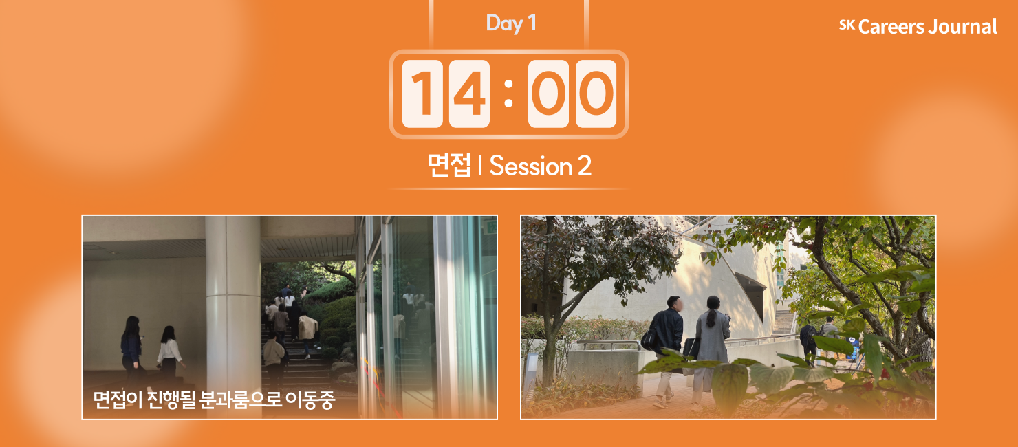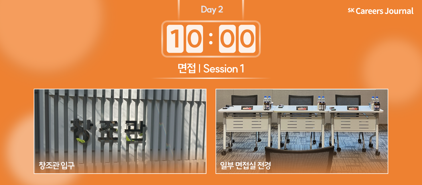 마지막 날 첫 번째 면접 세션 시작! 면접은 창조관, 패기관, 경영관 등 각자 배정받은 다양한 곳에서 진행되었습니다.