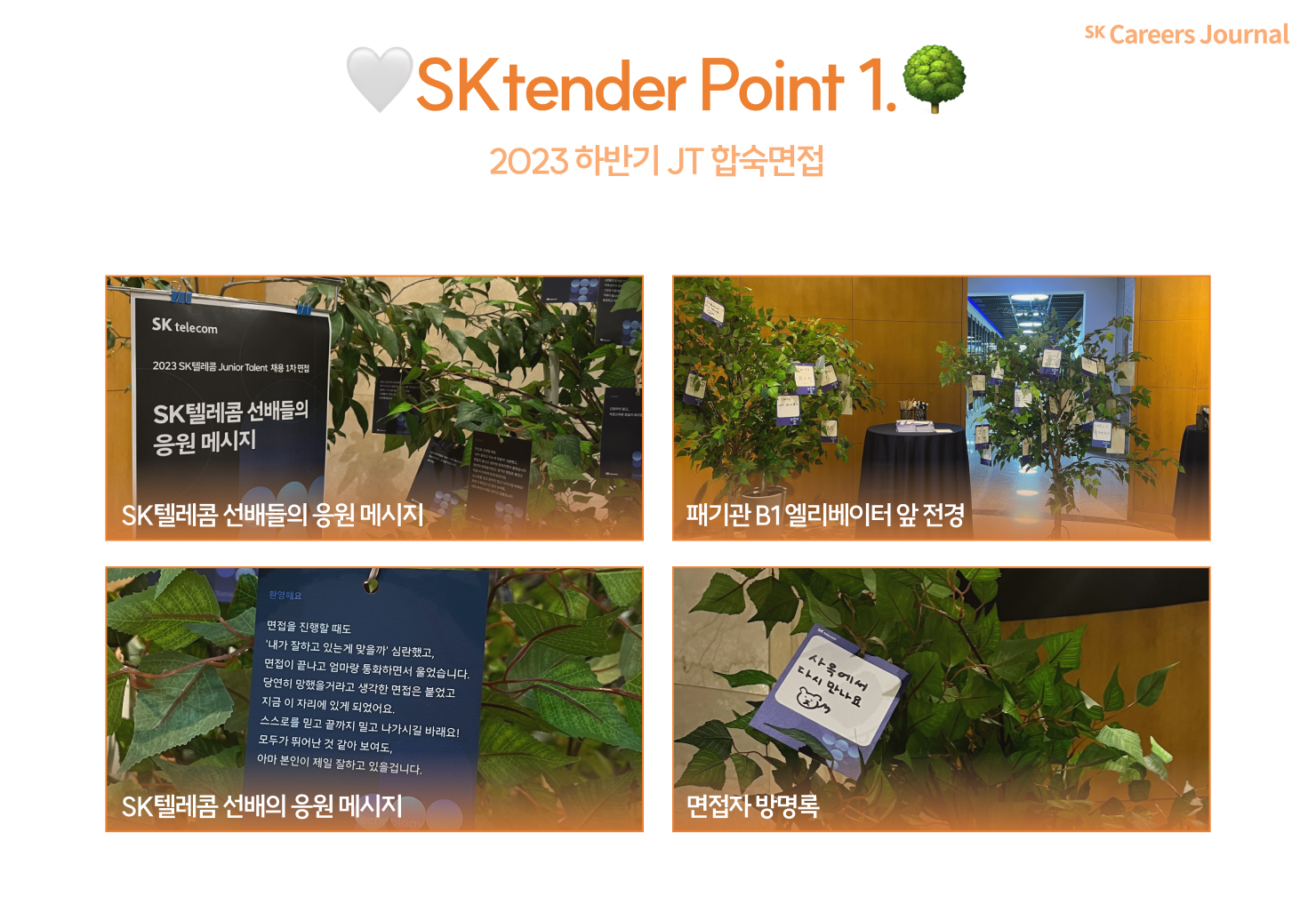 타임 라인으로 흘러가는 기사 속 <👀알아보자, 000>와 <🤍SKt-ender Point>를 함께 확인하시면 더욱 재미있고 도움 되실 거라는 포인트! 살짝 알려드릴게요. 마지막엔 면접위원님들의 인터뷰도 준비해두었으니 잘 따라와 주세요 🙋🏻