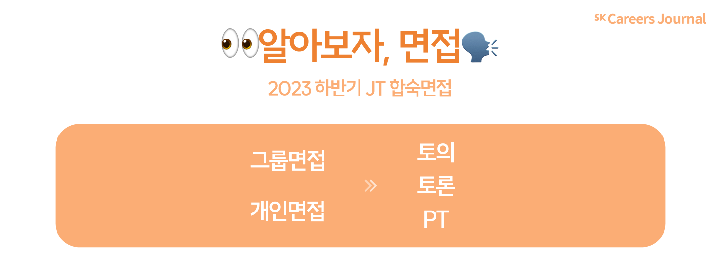 이번엔 2023 하반기 JT의 면접위원님 두 분을 모시고 인터뷰를 진행했습니다! 면접위원님들께서 직접 이야기해 주시는 합숙면접 이야기, 바로 확인해 보시죠!