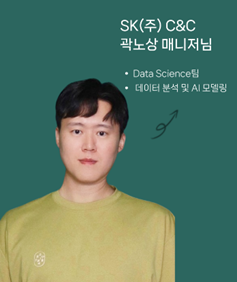 안녕하세요. SK(주) C&C Data Science팀에서 데이터 분석 및 AI 모델링 업무를 맡고 있는 곽노상 매니저입니다. 데이터 분석 및 AI 모델링은 고객사의 다양한 데이터를 분석, 해석하여 고객사가 직면한 문제를 해결하기 위한 방안을 도출하고, 개발한 AI 모델을 현업에 적용하여 비지니스 Value를 창출할 수 있도록 하는 업무입니다.