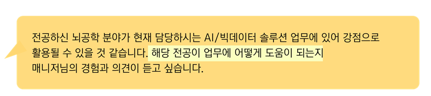 2편으로는 <AI Project Based Learning : Why?How?>를 주제로 발표해주신 곽노상 매니저님과의 인터뷰를 준비했습니다. 곽노상 매니저님은 뇌공학 분야를 전공하시고 현재 데이터 분석과 AI 모델링 업무를 맡고 계신데요, 매니저님의 인사이트 가득한 인터뷰를 함꼐 만나볼까요? 😊