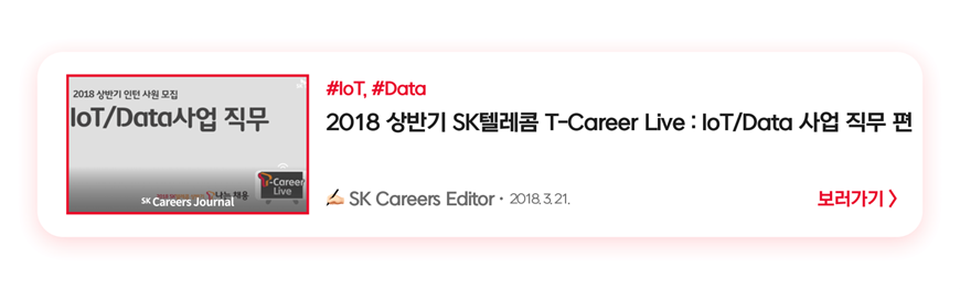 2018년 상반기 인턴/신입사원 채용을 대비하여 진행된 T Careers Live, IoT/Data 사업 직무편! 채용 CoE 채용담당자와 IoT사업지원그룹 직무 담당자가 직접 이야기해 드려요🗣
