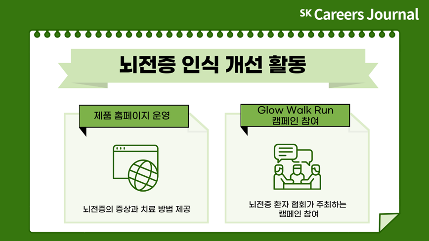 SK바이오팜은 치료와 예방을 넘어 뇌전증 환자의 인식 개선에도 힘쓰고 있습니다. 일례로 뇌전증의 증상과 치료 방법을 확인할 수 있도록 제품 홈페이지를 운영하고 있습니다. 더불어 뇌전증 환자 협회가 주최하는 ‘Glow Walk Run’ 캠페인에 참여하는 등 뇌전증 인식 개선 활동을 이어가고 있습니다.