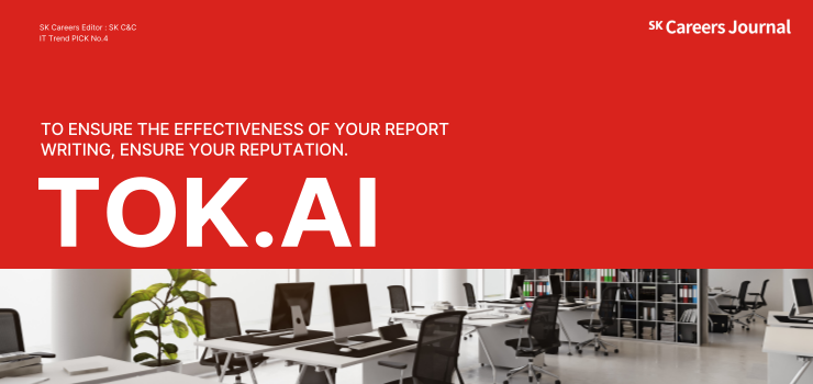 보고서까지 시간을 들여야 해? AI 기반 보고서 자동 생성 솔루션을 소개합니다💫 보고서 작성은 많은 직장인들에게 시간 소모적인 업무 중 하나로 꼽히며, 때로는 정작 중요한 업무를 미루게 만들거나 야근의 원인이 되기도 합니다. 이러한 고민을 해결하기 위해 SK㈜ C&C에서 제공하는 생성형 AI 기반 보고서 작성 솔루션, tok.ai가 등장했는데요, tok.ai는 단순히 보고서 작성 준비를 넘어, 실제 기업 데이터를 활용해 목적에 바로 사용할 수 있는 완성형 보고서를 제작할 수 있는 혁신적인 솔루션입니다🎉